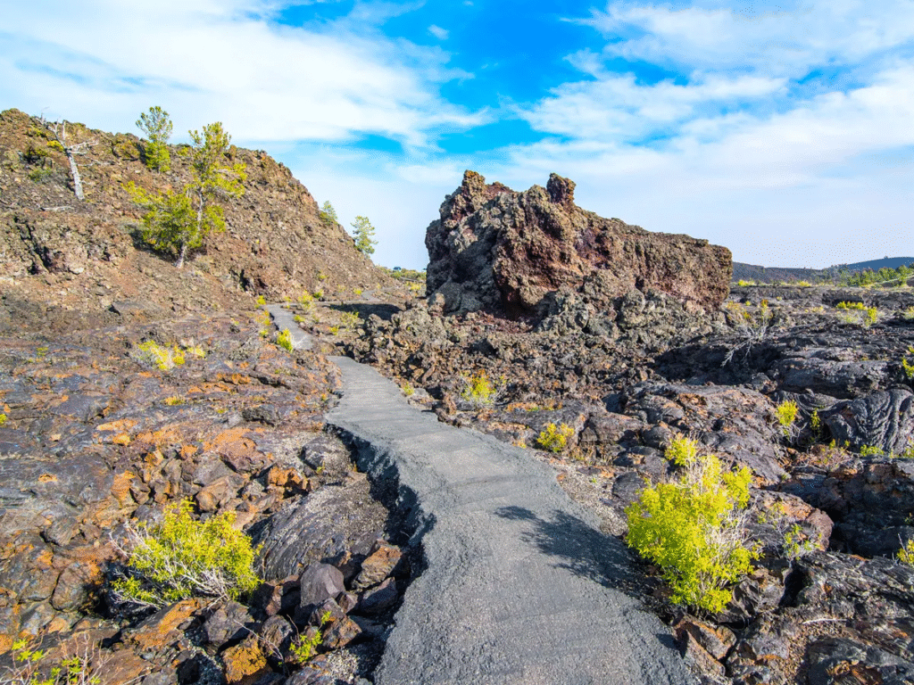 Volcanic activity dating back about 20,000 years has left three major lava fields in the area, as well as 25 cinder cones, tree molds (which preserve the remains of living trees overcome by lava), craters, and more. Fascinating features among the more than 53,000 acres include lava tube caves and the Blue Dragon lava flow, named for its striking color and resemblance to a prehistoric reptile.