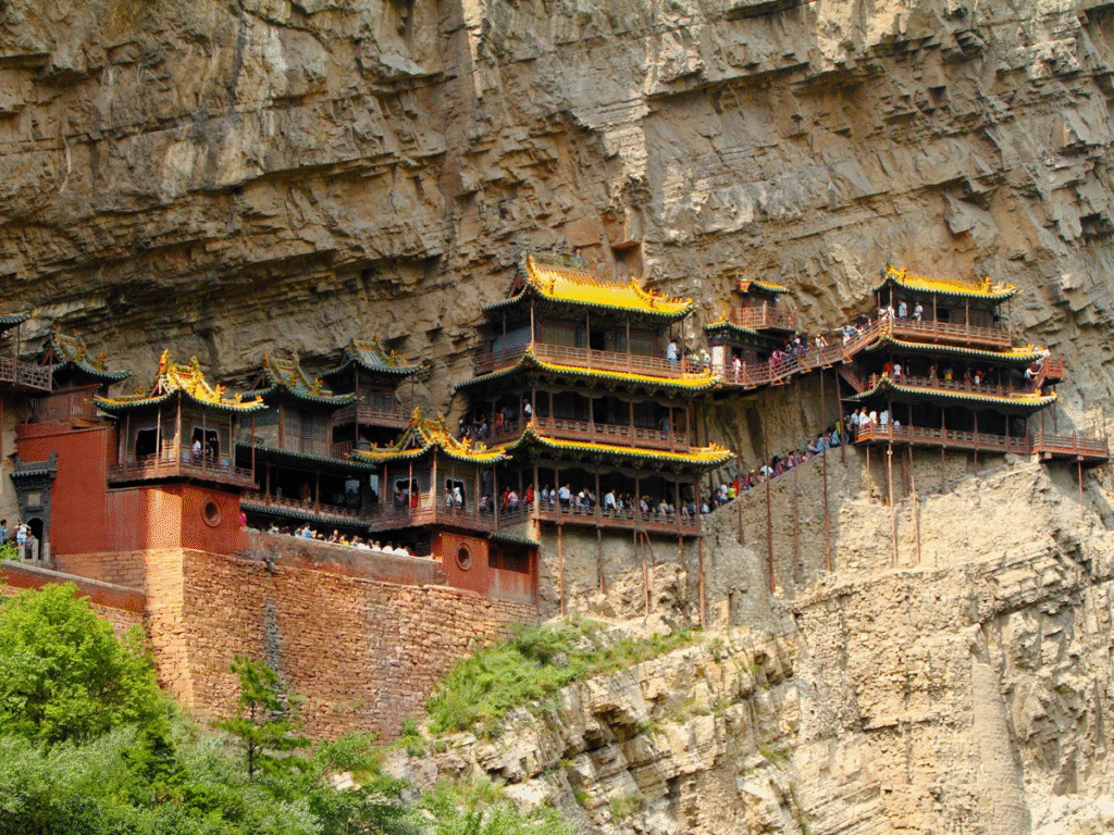 Xuankong Monastery makes an arresting first impression, appearing as a gravity-defying complex suspended from a cliff face overlooking Jinxia Gorge in China’s north-central Shanxi Province. On closer inspection, visitors will see a series of wooden beams and platforms that anchor the temple pavilions into the rock of Hengshan Mountain, giving the site its “Hanging Temple” nickname.