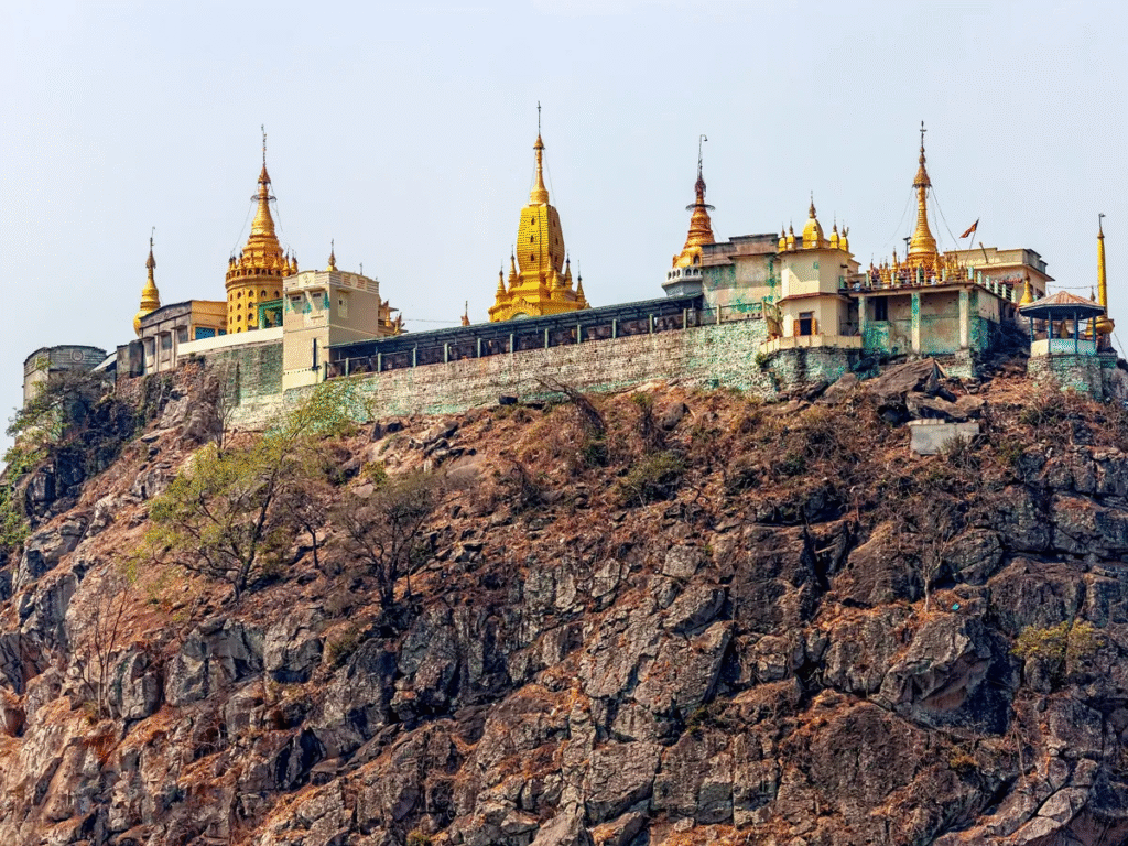 Taung Kalat (meaning “Pedestal Hill”) overlooks its surroundings from the top of an extinct volcano, close to Mount Popa in Myanmar’s Mandalay region. The site for this Buddhist monastery was chosen so that followers could worship the nats, spirits thought to bring good fortune and protection, which are said to live here.