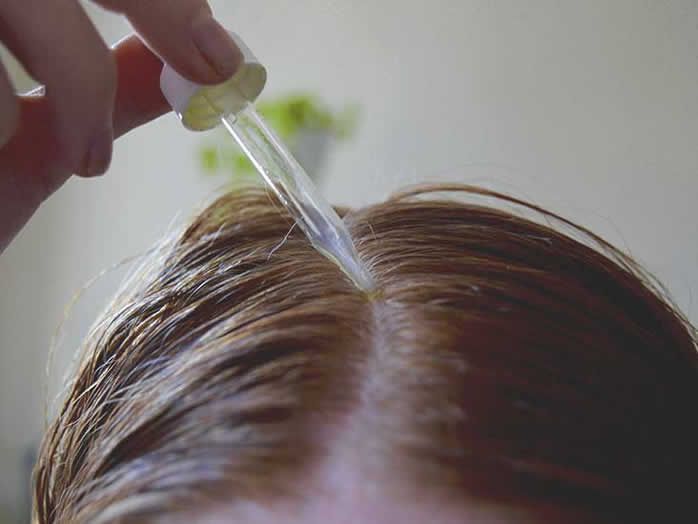 - Divide el cabello en secciones y aplica el aceite directamente sobre el cuero cabelludo con la yema de los dedos, realizando un suave masaje circular durante 5 a 10 minutos.