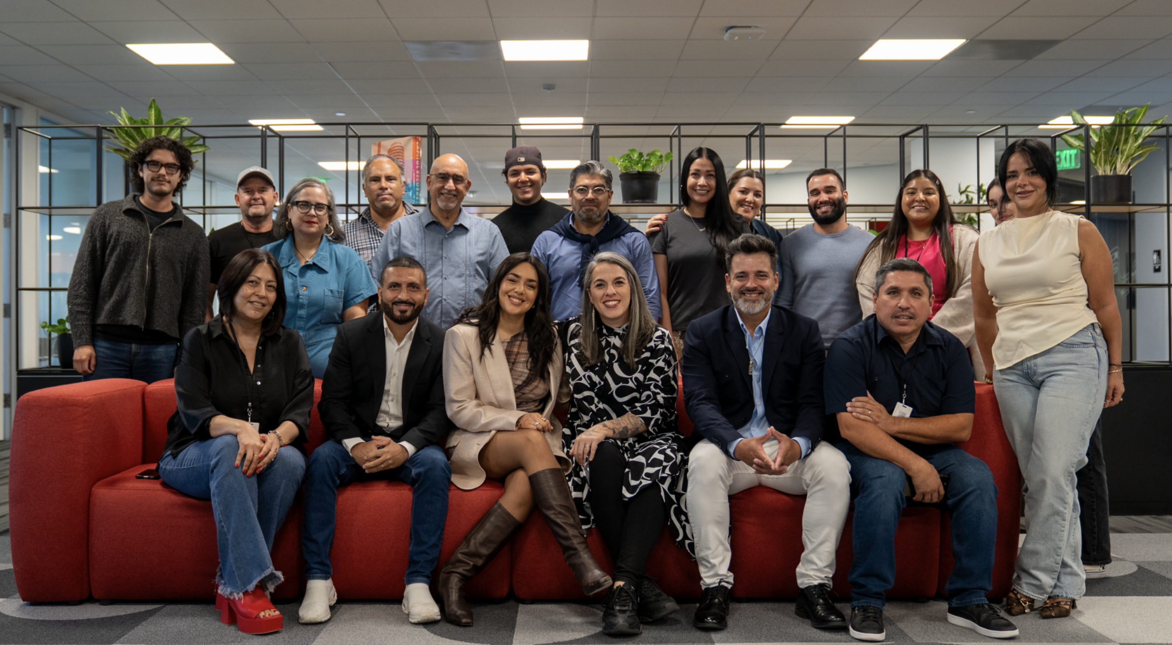 Arriba de izquierda a derecha: Luis Zaragoza – Gerente de eCommerce; Armando Ávila – Senior Manager, Marketing y Operaciones; Vicky Cabildo – Gerente de Alianzas Comerciales; José Perea – Gerente de Scouting y Promoción; Ricardo Astiazarán – Vicepresidente de Supply Chain UMLE y LATAM; Daniel Ramos – Gerente de Marketing; Alberto Del Castillo – Vicepresidente Senior de Promoción, Scouting & Relaciones con Artistas; Kennia Cázares – Directora de Supply Chain Digital; Pamela Alba – Vicepresidenta de Marketing Comercial y Digital; Lucas Visconti – Gerente de Asuntos Legales y de Negocios; Guadalupe Cortez – Coordinadora de Marketing Digital; Neli Cruz Esparza – Gerente de Marketing; Leyre Granda – Senior Manager de A&R.