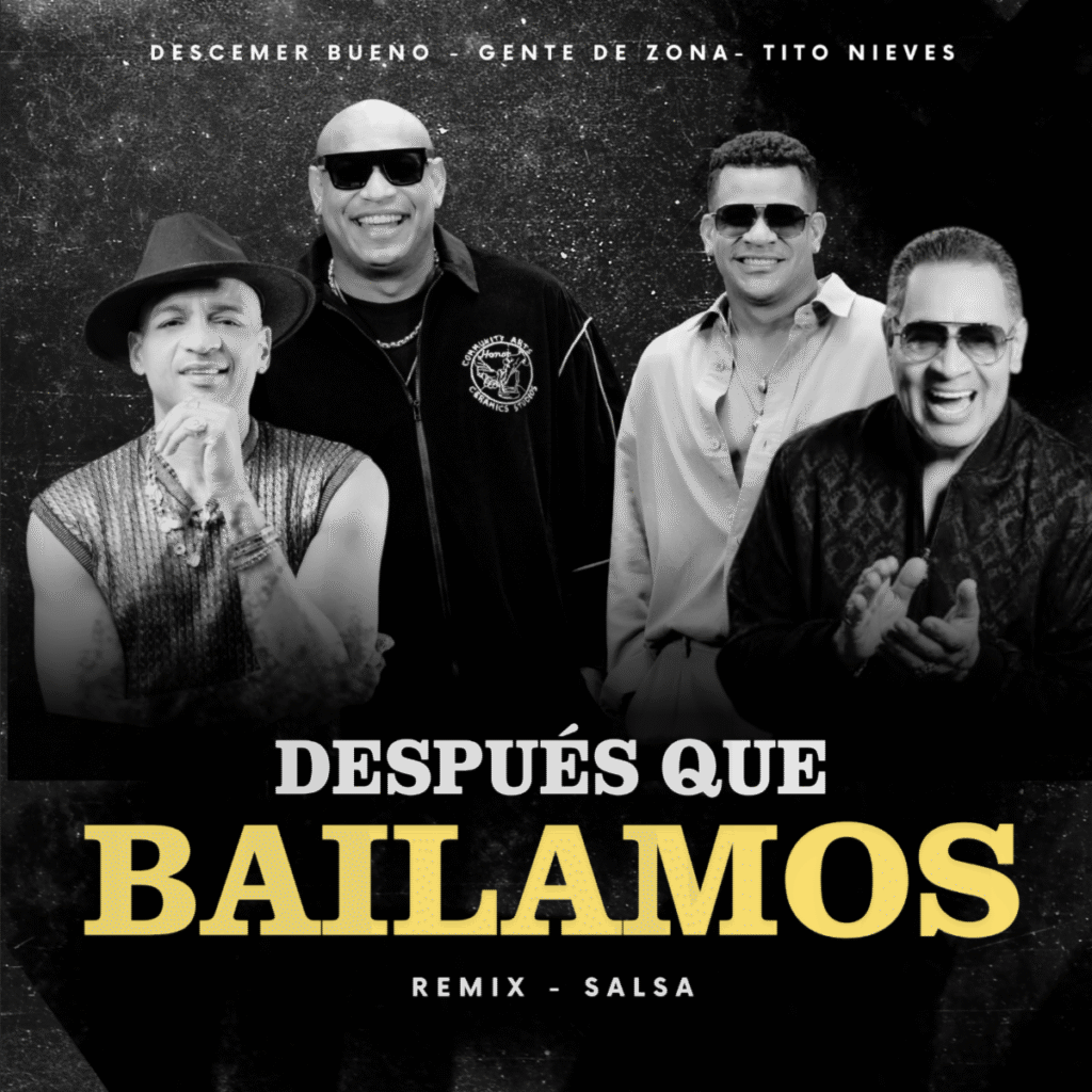 (Miami, Fl. 1 de febrero de 2026) –Los artistas Descemer Bueno y Gente de Zona presentan el lanzamiento mundial del remix en versión salsa de “Después Que Bailamos”, esta vez acompañados por una de las máximas leyendas del género: Tito Nieves. El sencillo estará disponible a partir del 30 de enero de 2026 bajo los sellos Plus Media y Bueno Entertainment.