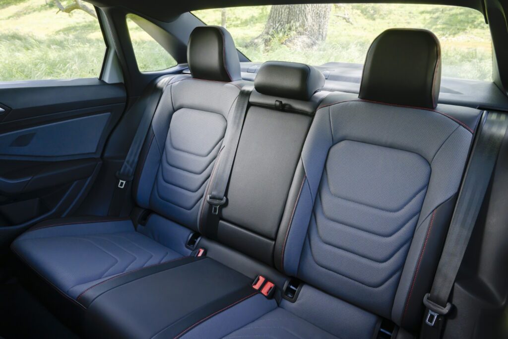 La calidad de construcción es formidable, así como el espacio interior. El Jetta es más largo que sus competidores, y esta longitud se refleja en el espacioso asiento trasero y el enorme maletero con capacidad de 14,1 pies cúbicos. Los asientos no son los mejores de la industria, pero el nivel de comodidad es aceptable. Tienen tapicería de tela de forma estándar, y las características disponibles incluyen tapicería de cuero sintético, tapicería de cuero genuino con calefacción y ventilación, un asiento del conductor con configuraciones de memoria, y volante y asientos de la segunda fila calefactados.