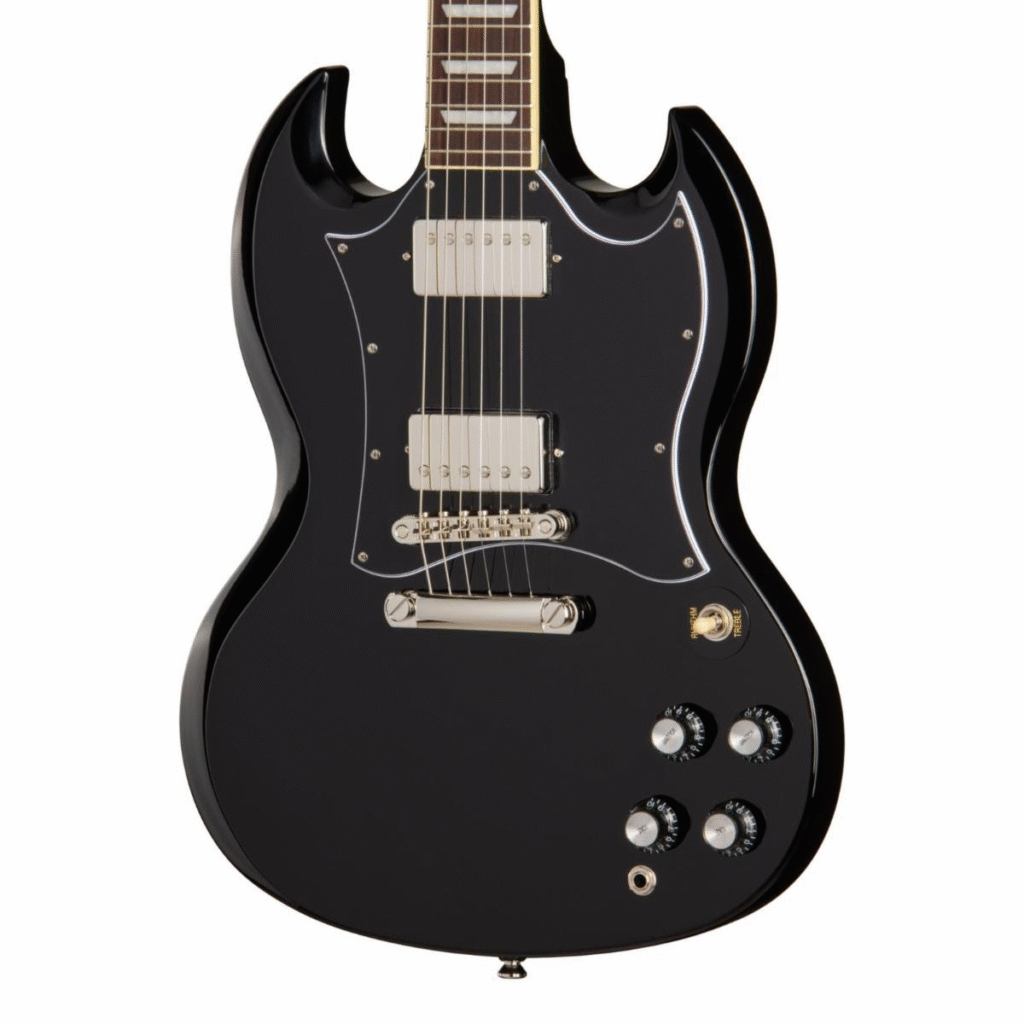 La Epiphone SG Standard cuenta con un cuerpo liviano de caoba con doble corte que ofrece un acceso sin esfuerzo a los 22 trastes. Su mástil de caoba encolado mejora el sustain y está tallado con un perfil en C SlimTaper™ de acción rápida. Un diapasón de palisandro encuadernado con incrustaciones trapezoidales de nácar, 22 trastes medium jumbo y un radio de 30 centímetros (12 pulgadas) ofrecen una ejecución fluida tanto para acordes como para estiramientos (bendings). Las clavijas Grover® Rotomatic® de primera calidad y la cejuela Graph Tech® se complementan con un puente LockTone™ Tune-O-Matic™, de Epiphone, y un cordal Stop Bar para una afinación impecable y una entonación precisa.
