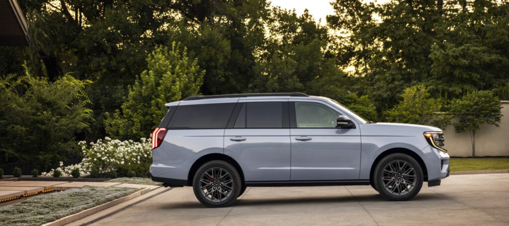 El espacio de carga también es amplio, con 21,6 pies cúbicos, detrás del asiento de la tercera fila. Otro cambio notable introducido en el 2025 Expedition es el innovador diseño del portón trasero. Es de estilo divisible: mientras la parte superior se abre hacia arriba, como la mayoría de los SUV, la sección inferior se pliega hacia abajo como un portón que puede soportar hasta 500 libras (227 kilogramos) y puede usarse para sentarse o para crear una mesa de dos niveles.