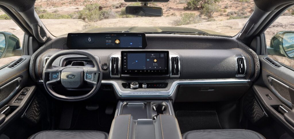 Ford rediseñó el pasado 2025 el sistema de infoentretenimiento de la Expedition. Equiparon al SUV con una pantalla táctil de 13,2 pulgadas (33 centímetros) en el centro del tablero y un amplio panel de instrumentación digital de 24 pulgadas (61 centímetros). En lugar de colocar esta pantalla larga detrás del volante, la sitúan más arriba y más cerca del parabrisas para mantener los datos clave de conducción dentro de la vista delantera del conductor. Este diseño inusual pero vistoso elimina la necesidad de una pantalla frontal o HUD separada, pero requiere un volante plano y compacto, lo cual resulta poco convencional.