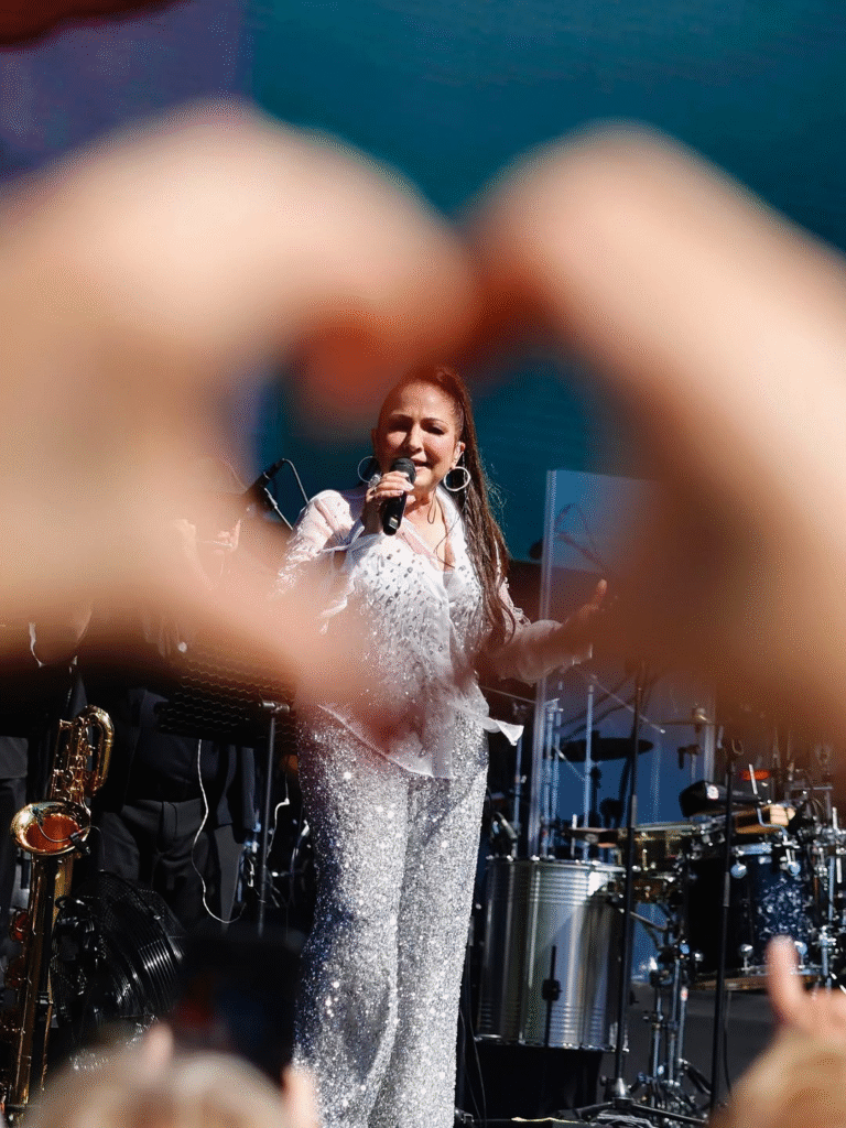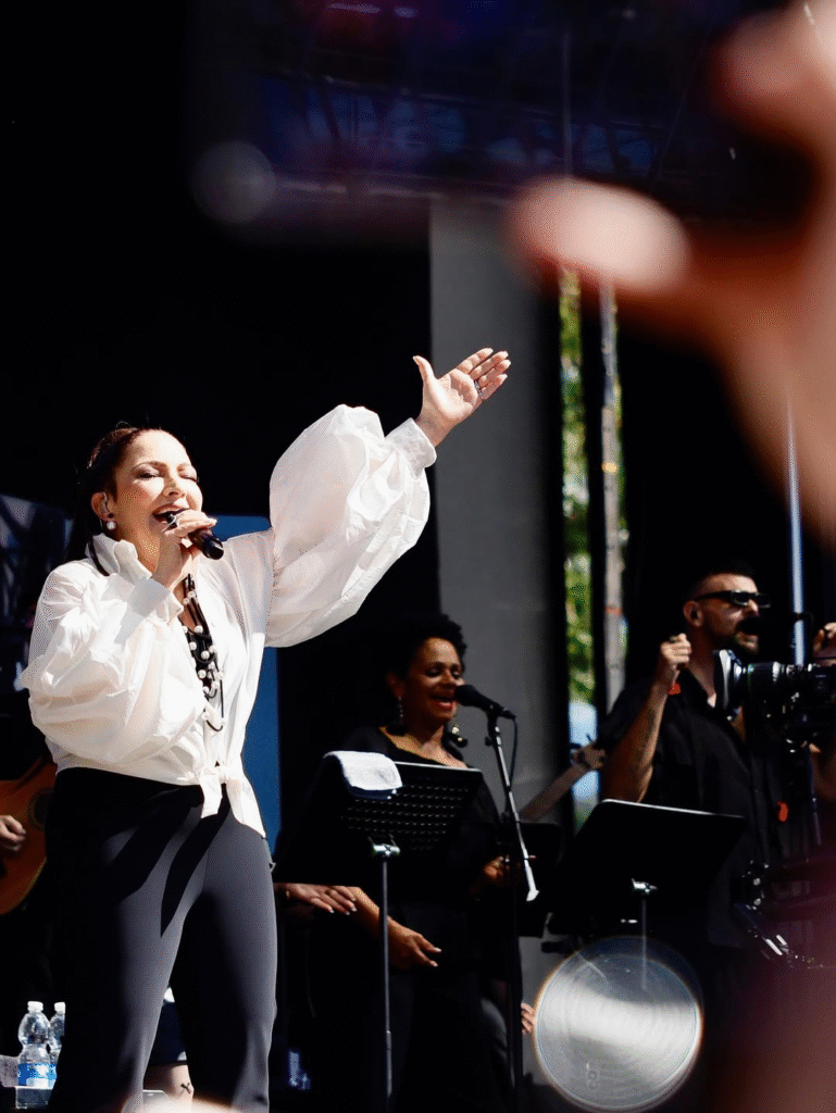 For nearly two hours, Estefan performed her greatest hits — such as “Oye mi canto,” “Mi Tierra,” “Conga,” and “Hoy” — and presented several tracks live from her recent album Raíces, which blends the power of Latin rhythms with modern production. Each song was met with roaring applause from an enthusiastic crowd that sang and danced the entire time.