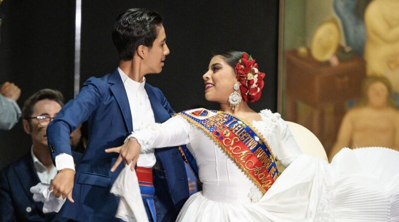 En uno de los intermedios de los desfiles, dos pequeños bailaron una de las danzas tradicionales de Perú, la marinera.
