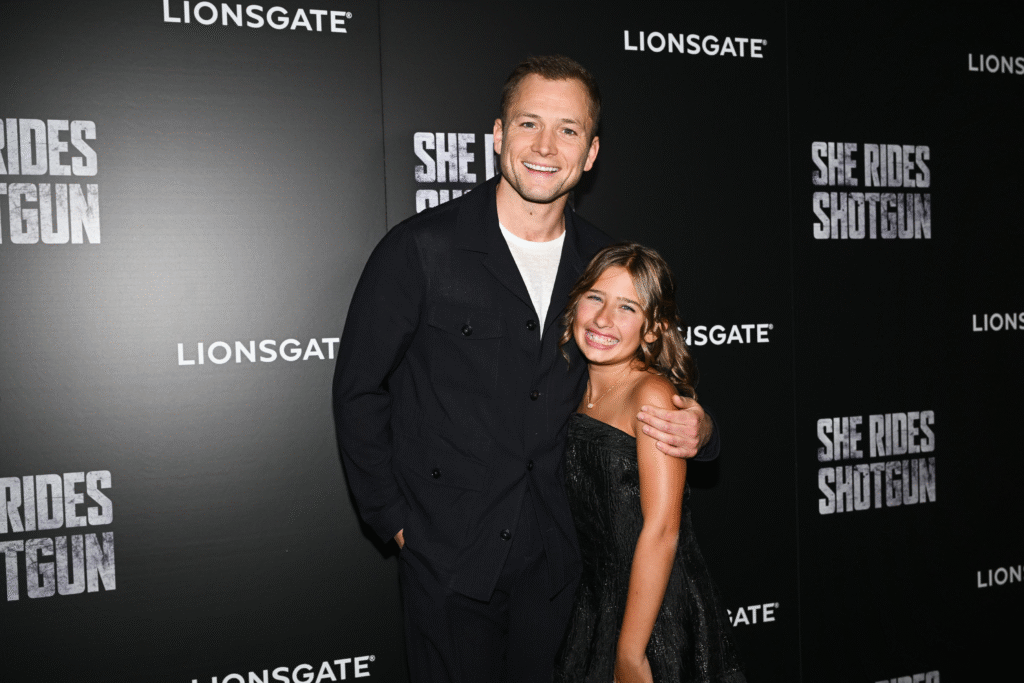 Taron Egerton and Ana Sophia Heger at the New York Special Screening of She Rides Shotgunon July 29, 2025.