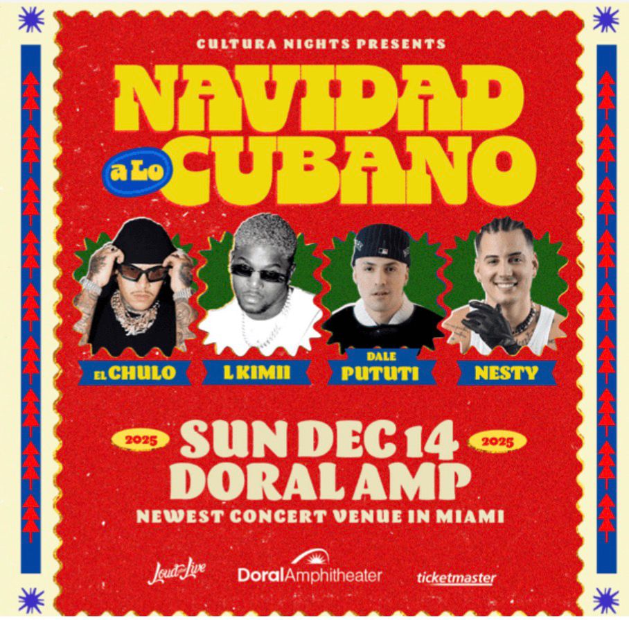 “Navidad a lo Cubano” reunirá a El Chulo, L Kimii, Dale Pututi y Nesty en el Doral Amphitheater