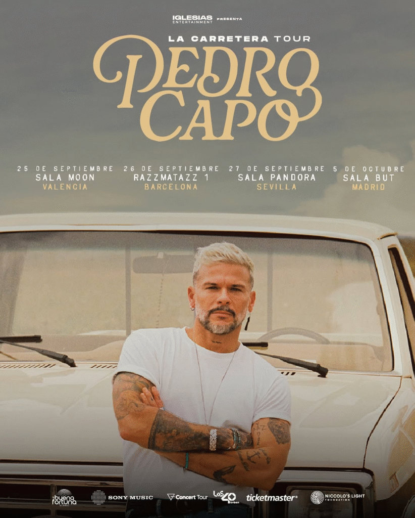 ‘La Carretera Tour’ llevará a Pedro Capó por más de media docena de países, entre los que, por supuesto, se encuentra España, donde el puertorriqueño anuncia tres fechas en las principales ciudades del país a finales de septiembre y principios de octubre. Pedro Capó se presentará en España el 25 de septiembre en Valencia. Pasará por la icónica Sala Razzmatazz de Barcelona el 26 de septiembre y por Sevilla el 27 de septiembre antes de cerrar su gira en nuestro país, en Madrid, en la Sala But, el 5 de octubre.