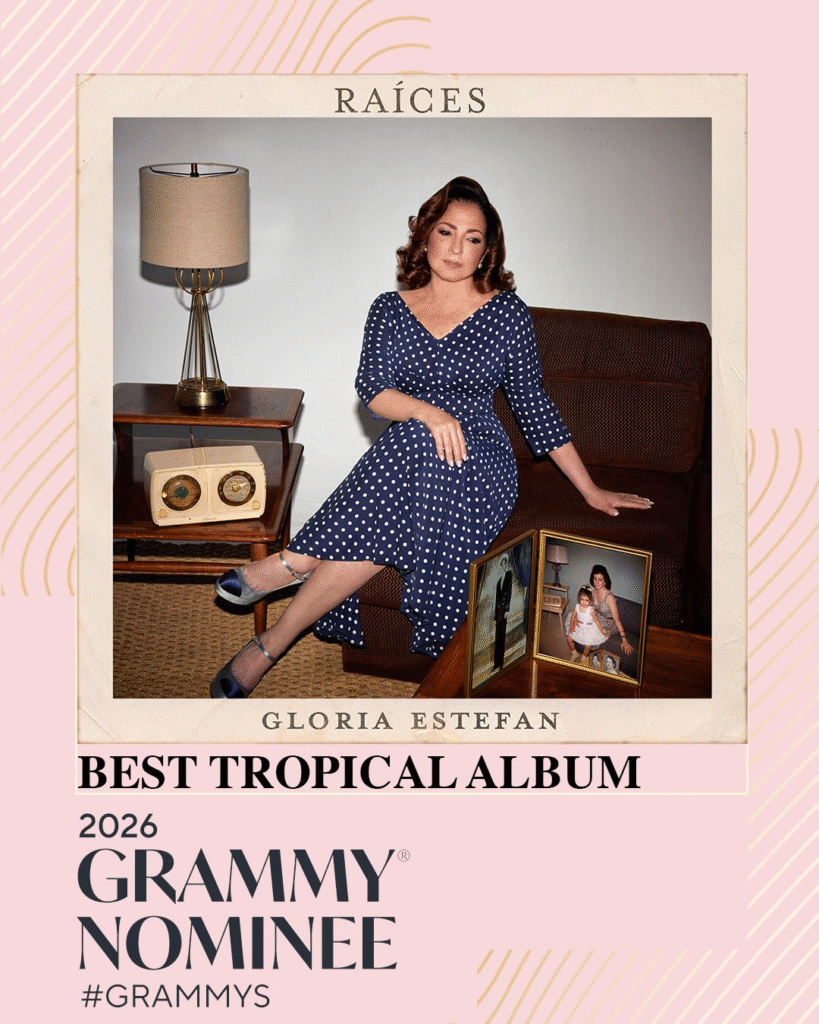 Miami, FL – 11 de noviembre de 2025 — En un año que celebra el extraordinario 50.º aniversario de Gloria Estefan en la música, su más reciente trabajo, Raíces, se erige como un reflejo de su legado y una reafirmación de su arte atemporal. El álbum—ya considerado uno de sus proyectos más emotivos—ha obtenido la prestigiosa nominación a Mejor Álbum Tropical Latino en la próxima 68.ª Entrega Anual de los Premios GRAMMY, que se transmitirá en vivo por CBS el domingo 1 de febrero de 2026 desde Los Ángeles.